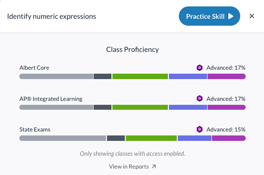 Go beyond core subjects with practice in Health, Financial Literacy, and Civics. Albert supports cross-curricular learning and makes it easy for every department to participate.